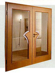 Межкомнатные двери делаются без порожка. Двери для санузлов могут поставляться с порогом, хотя в большинстве современных квартир применимы модели без него. Для санузлов в планировке обычно предусмотрены проемы, меньше по высоте и более узкие, чем в остальных помещениях. Поэтому если вы хотите установить во всей квартире одинаковые двери, придется искать модели, в размерных линиях которых есть полотна и под такой проем. Либо придется укорачивать полотно. Только учтите, что двери с сотовым заполнением приспособлены для этого плохо. Что касается применимости дверей в "мокрых" помещениях, то для этого подходят даже шпонированные модели. Правда, при условии, что все торцевые поверхности покрыты шпоном и хорошо обработаны водостойким лаком. При покупке импортной двери для санузла можно ориентироваться на значки пентаграмм в каталогах.
