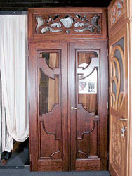 Филенчатая дверь - ее полотно представляет собой деревянную раму, которая состоит из обвязки (основных брусков) и средников (брусков, которые делят дверное полотно на части и соединяют бруски обвязки). Внутренние проемы рамы заполняются вставками из филенчатых панелей (филенок), стекла или их комбинации. Количество средников определяет число филенчатых вставок. Филенки и стекло закрепляются одним из двух основных способов: непосредственно в обвязку или через промежуточную рамку. В любом случае у филенки должна сохраняться "свобода перемещения" в пазах обвязки и средников. Часто место соединения филенок и стекла с элементами обвязки и средников закрывается так называемыми штапиками, а для декорирования больших поверхностей стекла используют горбыльки и раскладки. Эти элементы делаются из дерева, пластика, MDF, могут декорироваться шпоном, окрашиваться, ламинироваться и т. Д.