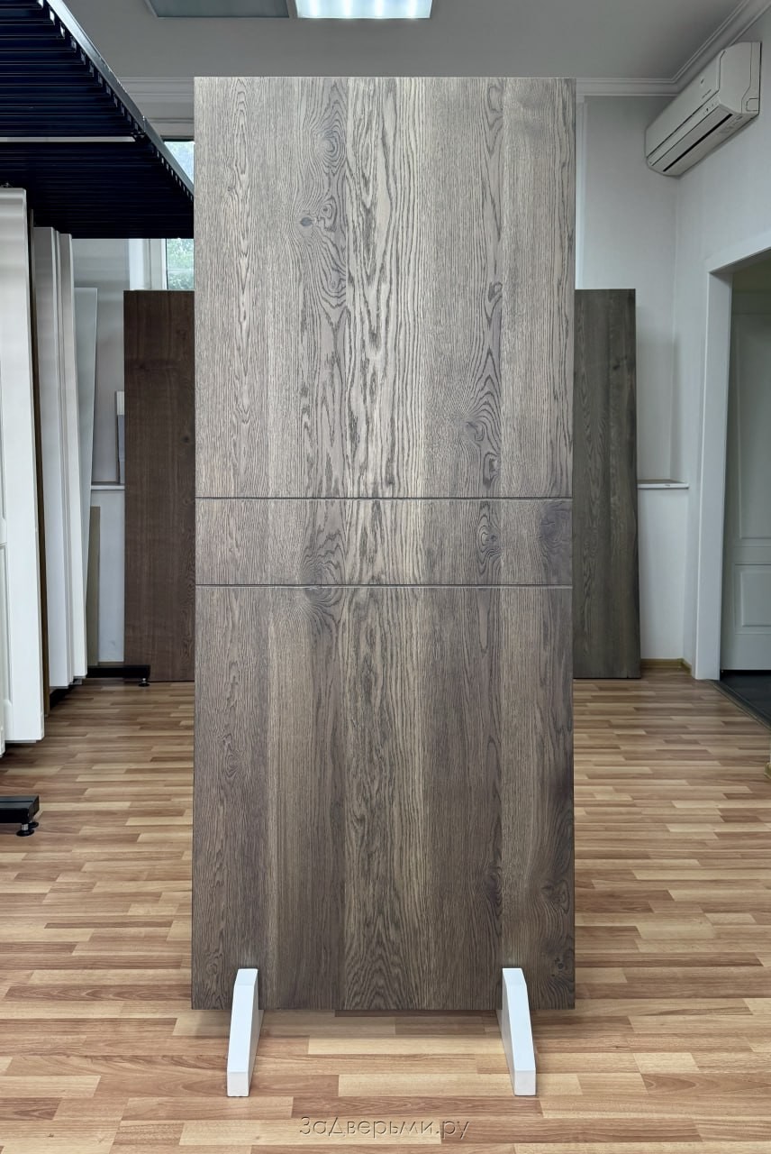 Конструкция дверных полотен комбинированная из массива дуба и ольхи. Каркас и все детали двери изготовлены из массива ольхи. Наружная поверхность полотна покрывается 4мм ламелью из массива дуба. На поверхности двери отсутствуют сучки и различные дефектные места. Рисунок деталей оптимально подобран. Все детали сверху покрываются трехслойным лаковым покрытием. Коробка двери телескопическая выполнена из массива ольхи и окутана натуральным шпоном дуба, имеет уплотнитель. Наличники плоские телескопические и доборы выполнены из массива ольхи и покрыты шпоном дуба. Наличники телескопические с каннелюрами изготовлены из массива дуба. Розетки, цоколя и карнизы из массива дуба.