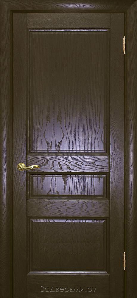 Дверное полотно состоит из стоевых, поперечных связок и филенки. Стоевые и поперечины изготовлены из сращенного массива сосны. Филенка дверного полотна изготавливается из МДФ 16 мм. Полотно полностью покрывается скрепляющим листом МДФ толщиной 4ммм. Дверные полотна отделаны натуральным шпоном ценных пород древесины. Багет выполнен из массива дерева. При лакировке продукции используется полиуретановый лак «Akzo Nobel». Коробка с уплотнителем из сэндвич бруса полукруглая телескопическая. Наличник из МДФ полукруглый телескопический.